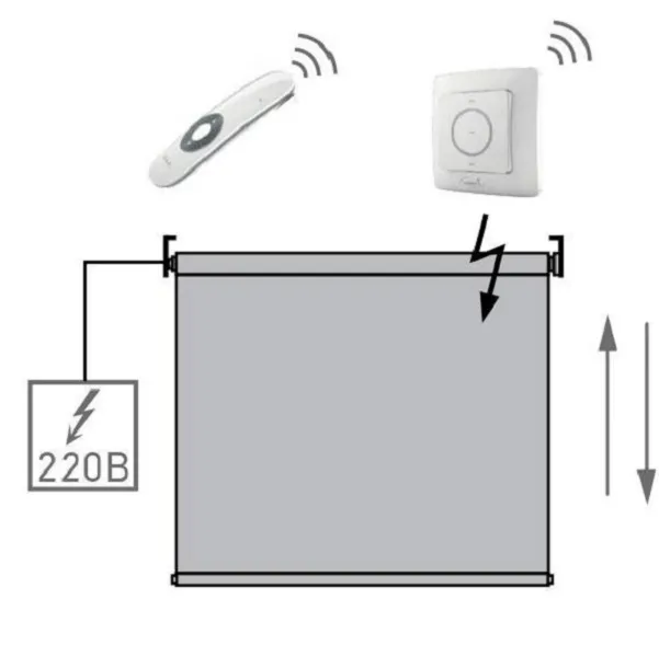Кнопки, которая соединяется с ролетами электрической проводкой. Некоторые модели оснащены таймерами, контролирующими включение/выключение.